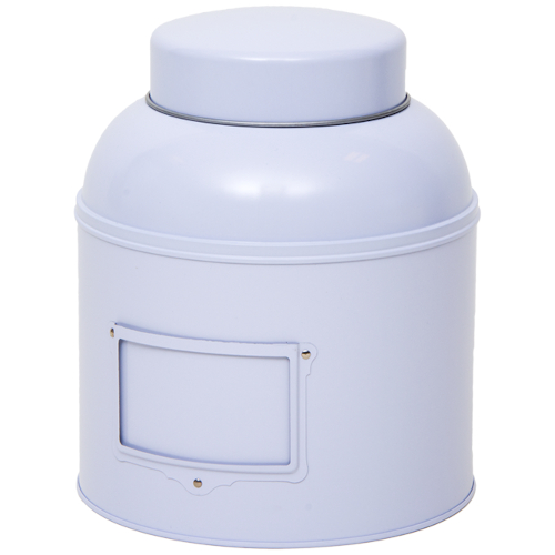 Lata blanca redondeada, con tapa a presión, para conservar en la tienda 1500 gr. de té. 20,3cm diámetro. 24,3cm alto.